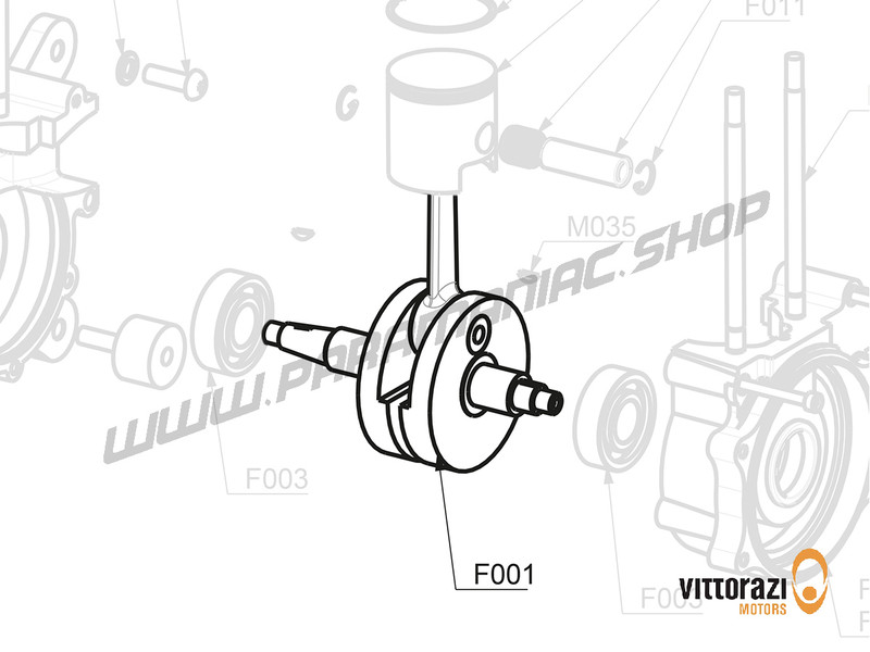 Kurbelwelle mit Schubstange und Schwungrad Mutter 10 x 1,25 mm - Passend für: "First Version" Manual Start I.P.C. Number 0060, "MY20" Manual start I.P.C. Number 0061, "MY22" Manual Start I.P.C. Number 0062